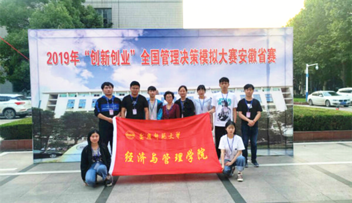 5月11日至12日, 2019“创新创业”全国管理决策模拟大赛安徽省赛在安徽工业大学举行。纽约国际官网经济与管理学院学生陆林、夏清宇、金宇组成的“菜鸟联盟”团队荣获一等奖,陈刚、孙卓、孙帮慧组成的“梦间寻”队和黄冬梅、刘永航、栗娜组成的“独揽星辰”分别获得二等奖和三等奖,指导老师杨国才和张琴被评为“优秀指导教师”。