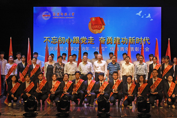 5月4日下午,龙山校区音乐厅团歌嘹亮,学校隆重举行“不忘初心跟党走,奋勇建功新时代”2018年“五四”优秀青年表彰大会。校党委书记许继荣,党委副书记、校长闵永新,党委常委、副校长汪时珍,党委常委、副校长刘友忠,党委常委、纪委书记胡腊香,党委常委、组织部副部长戴卫义,党委常委、研究生院院长吴琼,党委常委、教务处处长苏本跃等校党政领导出席大会。校党委宣传部、教务处、学生处等部门负责人,各学院分党委、党总支分管学生工作负责人,团委会全体成员及学生代表参加表彰大会。