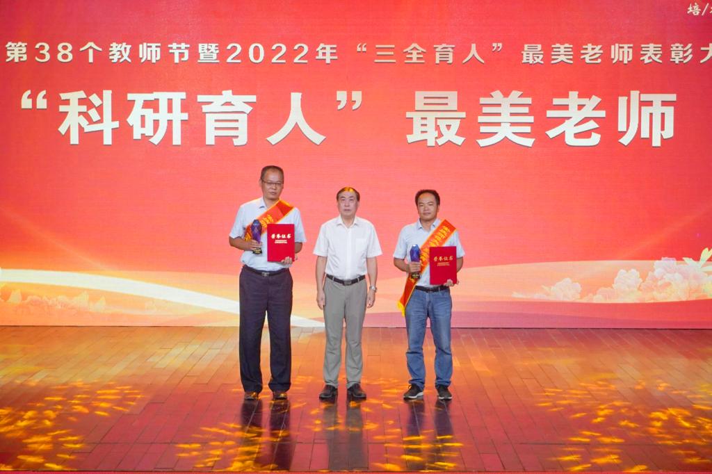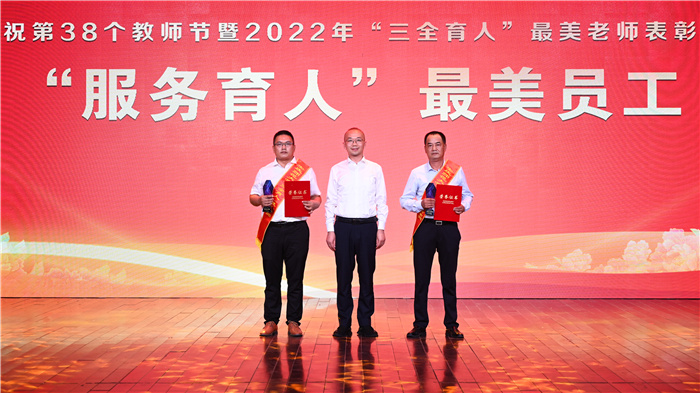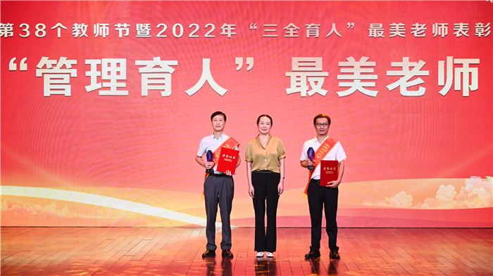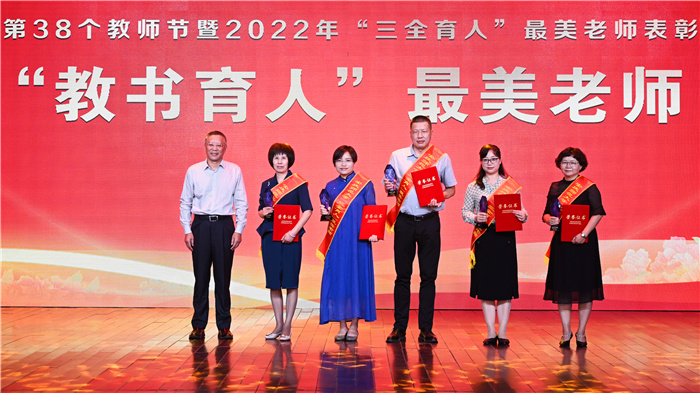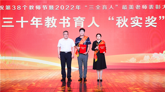 会场气氛隆重热烈,颁奖词铿锵有力。“三十年栉风沐雨,青丝白发终无悔;三十年敬敷世范,春华秋实满庭芳;他是火炬手,传递真理的火种;他是耕耘者,化育学子的心田;矢志不渝,追寻科学精髓;文化育人,守望诗意家园”。时时响起的热烈掌声是对优秀教师和教育工作者的敬意和赞许。