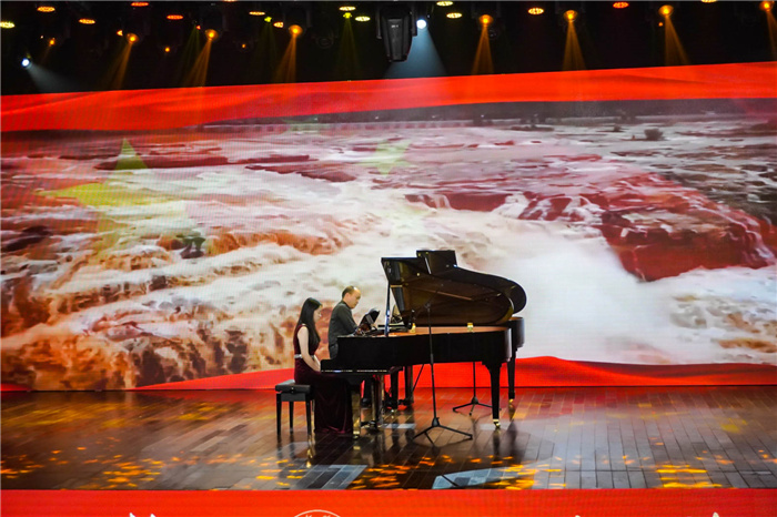 舞蹈《脊梁》气势磅礴,展现了中华儿女的力量与担当,中国的脊梁,筑梦在东方,无数中华儿女挺起了胸膛,挺直脊梁,撑托起民族的未来;钢琴协奏曲《黄河》让全体师生在音乐中回想起当年的峥嵘岁月,用音乐传递着希望和无所畏惧的精神,激起现场师生对黄河、对祖国的热爱和崇拜,全体师生深深陶醉在波涛澎湃的乐声中;“一生教师筑梦,一世师大拼搏,一页青春无悔……”,新老教师传帮带,薪火相传共成长,由师生共同朗诵的《薪火传承筑师魂》,展现了老师们默默相守、砥砺奋进的精神,对无数坚守岗位、无私奉献的老师表达了诚挚的敬意;歌伴舞《领航》带领师生领略了百年大党的青春激昂、盛世中国的万千气象、伟大民族的自信自强。