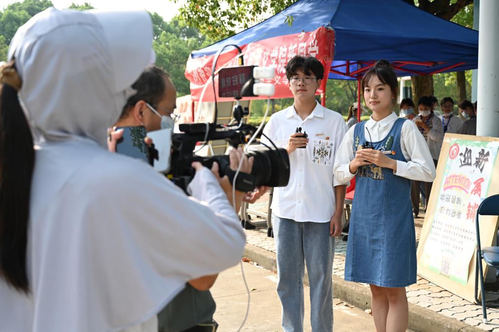 由于疫情防控需要,家长不能陪同新生进入校园,为了能让家长放心,及时了解新生报到及安顿情况,学校通过团委抖音账号和安庆直播网两大平台进行线上直播。“为确保直播工作顺利进行,开学初我们就共同筹划,报到前一天,12位主持人排练了近10个小时。”直播主持人广播电视学专业2021级1班高欣雨介绍到。“直播中,我们还邀请校领导、学院及相关部门负责人对新生和家长的疑问进行解答。”两天的直播,总浏览量超40万人次。