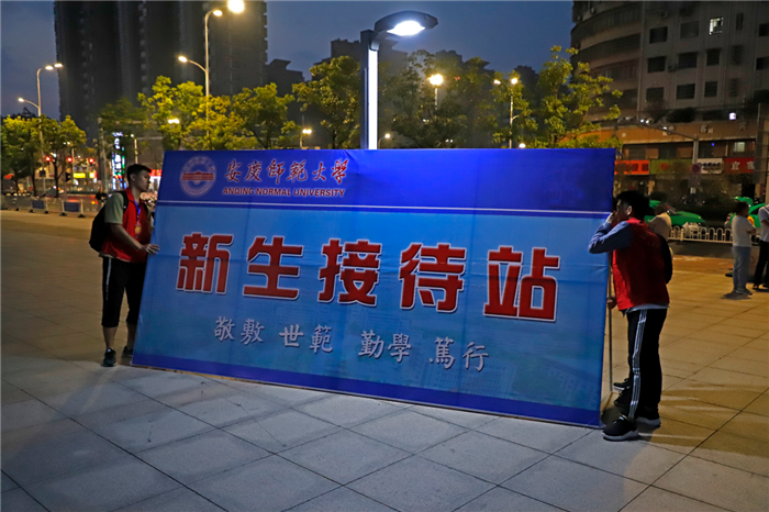 “今天,全校共有260余名志愿者参加迎新工作,将有1500余名新生抵达安庆火车站,高峰期在上午9点左右……”思想政治教育专业2017(2)班的李静贤是校学生会的主席,也是学校今年迎新工作的总负责人,对于今天的迎新流程及新生数据,她早已烂熟于心。她坦言,由于自己是第一次参加迎新工作,短时间难以安排得当,因此一个月之前她便开始筹备迎新工作,包括征集志愿者、从“今日校园”APP收集新生出行数据和分配具体工作等,这才使得今天的工作进行得井然有序。