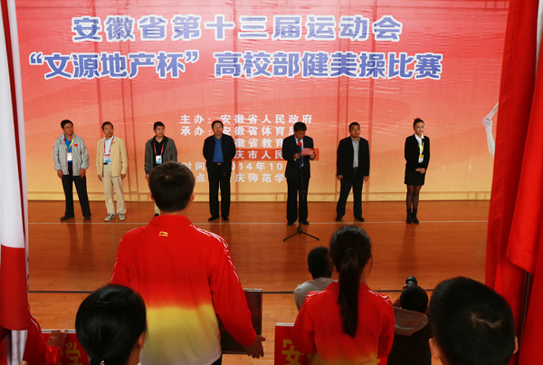 10月17日上午,安徽省第十三届运动会高校部健美操比赛开赛仪式在安庆师范学院龙山校区体育馆举行。校党委书记何小祥、副院长张群、安徽省教育厅体卫艺处、体育学院负责同志出席大会。宣进处长主持仪式。