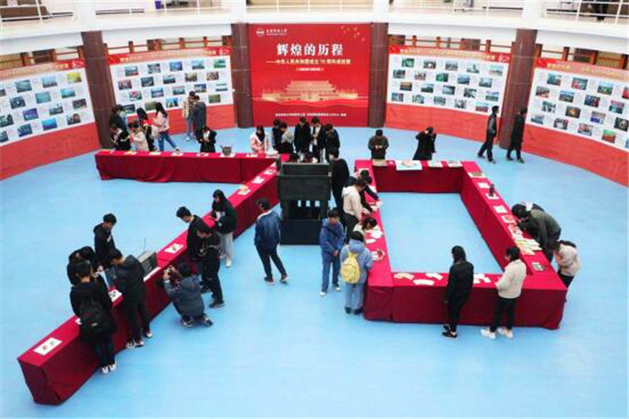 除了举办现场展览,纽约国际官网还发动2019级70个新生班级共同参与“爱我中华 新中国成立70周年成就”网络接力展。以1949年为起点到2019年,70个班级4000余名学生,70场线下主题学习,70天线上接力,转发学习新中国成立70周年的辉煌成就,14万次的网络点击,燃起了全校学生的爱国热情。