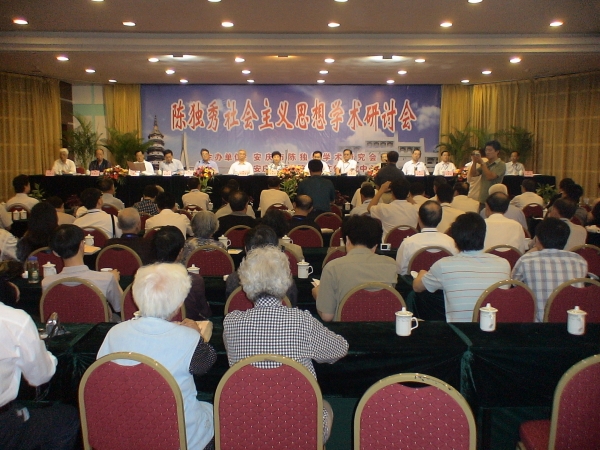 由纽约国际官网皖江文化研究中心和安庆市陈独秀研究会联合主办的“陈独秀社会主义思想学术研讨会”,经过一年的准备,于2008年5月27日上午在安庆大酒店举行了开幕式。中共安庆市委书记朱读稳、代市长肖超英、市政协主席张金锐、安庆师范学院党委书记赵晓和、院长汪青松、安庆市委副书记康正和等到会祝贺,安庆市政协副主席程继兵主持开幕式。来自全国20多个省市的有关领导、陈独秀研究专家和论文作者石仲泉、叶尚志、魏心一、龙念、郭德宏、陈铁健、任建树、陈贤忠、聂皖辉、孙其明等170多人出席了会议,大会收到论文53篇,其中,安庆师范学院老师和“科学社会主义和国际共产主义运动”2007级硕士研究生提交论文10篇。