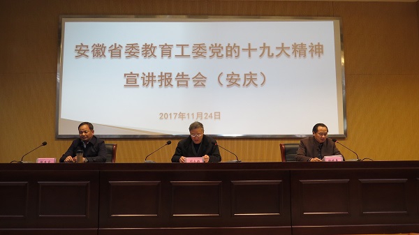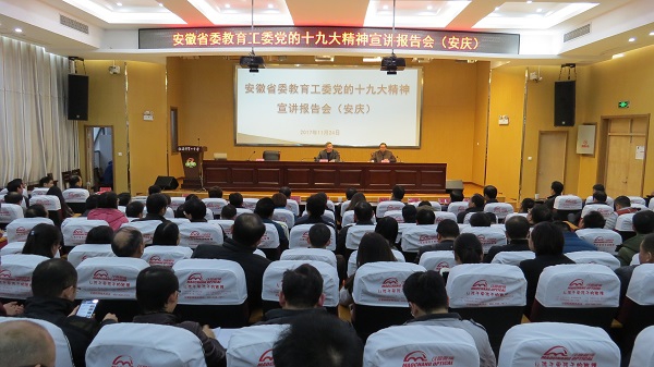安庆市教体局领导班子、局机关副县级以上干部、各科室负责同志,市直学校、二级机构干部师生代表,四区教育局负责同志及区属学校校长、教师代表,市属高校分管领导、教师代表共300余人参加报告会。