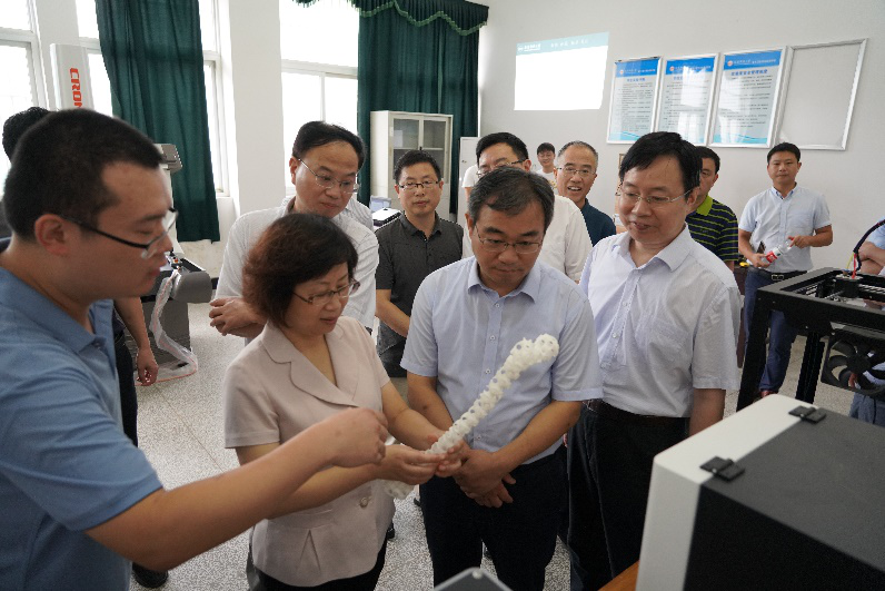 7月29日上午, 安庆市市委常委、组织部长、统战部长胡红兵,市委常委、副市长花家红,副市长王爱武及市直部门相关负责人一行来纽约国际官网电子工程与智能制造学院现场考察。