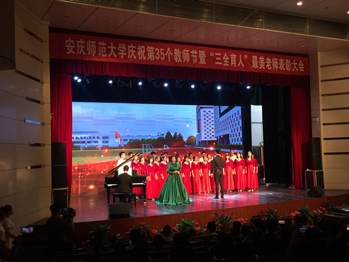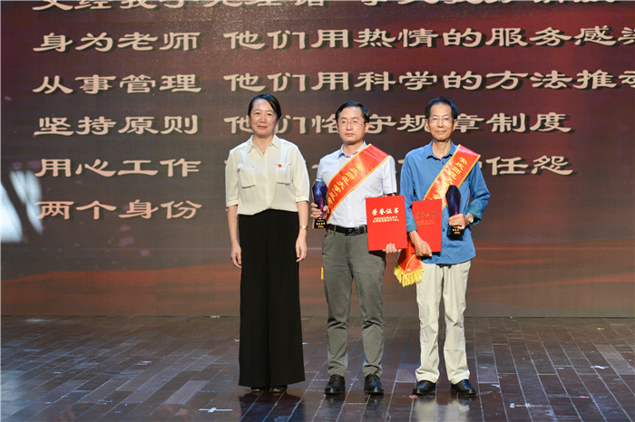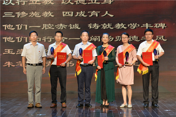 全体校党政领导为所有获奖教师和教育工作者颁发奖杯和荣誉证书。会场一片庄重神圣,时时响起的热烈掌声是对优秀教师和教育工作者的认可和赞赏。
