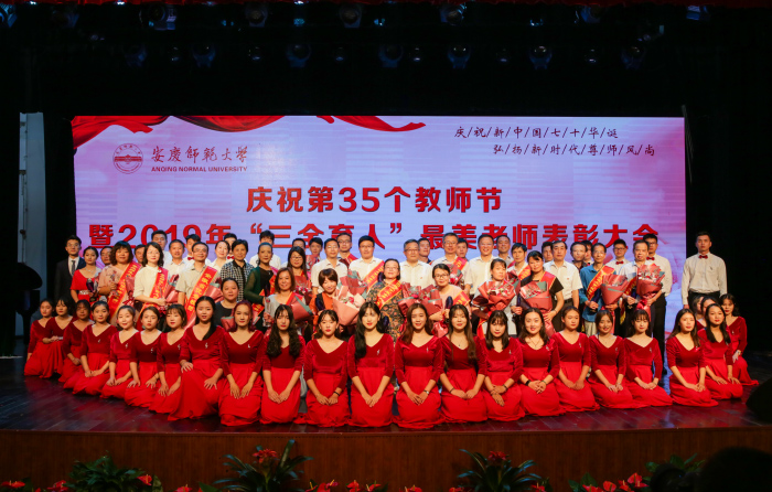 本次表彰大会以“庆祝新中国七十华诞,弘扬新时代尊师风尚”为主题,旨在表彰一批在教学、科研、管理、服务等工作中开拓进取、勇于创新、乐于奉献,并做出显著成绩的教师和教育工作者。各学院、各部门党政班子成员,全体获奖教师,学生代表以及物业公司代表共300余人参加了本次表彰大会。(文/学生记者 谢欣 图/陈广 江伟 范龙超 学生记者 陈萍 胡蝶 )