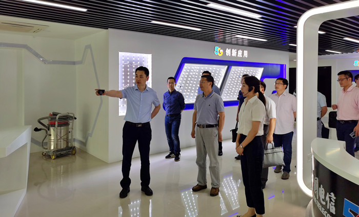 汪时珍一行边参观边询问,详细了解中国电信安庆分公司5G基建、场景应用、大数据中心等建设发展情况。