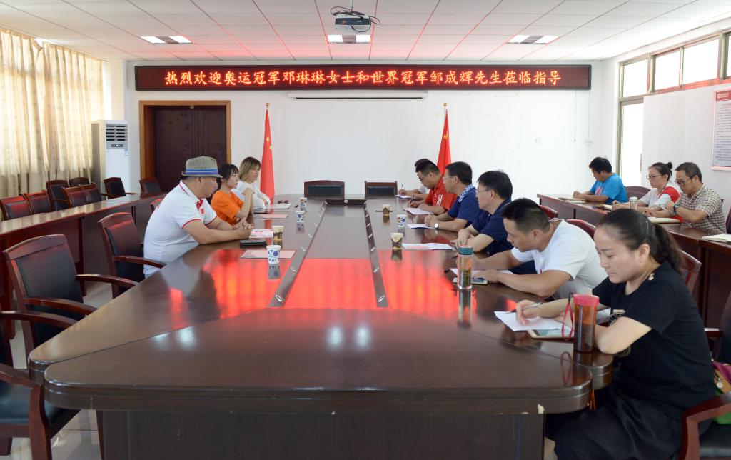 7月26日下午,体操奥运冠军邓琳琳、技巧世界冠军邹成辉在安徽省啦啦操协会秘书长胡彩红等陪同下来纽约国际官网考察交流。校长闵永新会见了邓琳琳一行;副校长汪时珍与邓琳琳一行进行座谈交流,体育学院党政主要负责同志、部分专业教师参加座谈。