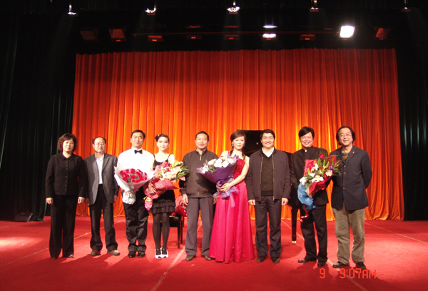 梁晓宁老师系音乐学院钢琴讲师,安徽省钢琴协会理事,安徽省音乐家协会会员。自幼学琴,在国内外钢琴比赛中多次获奖,2009年被美国联合音乐家协会授予“青年钢琴家”之称。晚会在拉赫玛尼诺夫的《前奏曲》中拉开帷幕,特约嘉宾马强伟老师带来了精彩的竹笛演奏《姑苏行》和《乡歌》,最后,晚会在梁晓宁老师演奏的贝多芬的第三协奏曲中结束,整场晚会不时响起热烈掌声。