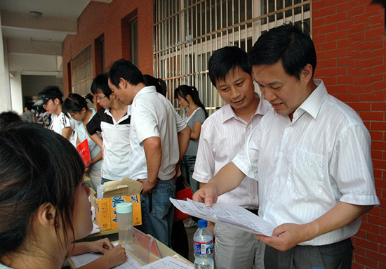 9月9日下午汪青松院长在龙山校区新生报名现场