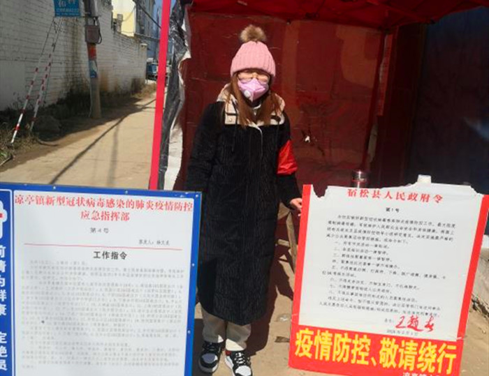 2月初,正是疫情最严重的时刻,音乐学专业2017级(1)班的李小龙在家乡阜阳市界首市顾集镇李新庄服务点站岗执勤,每日登记来往车辆,检查过往人员是否戴口罩。“志愿服务正是义务劳动的最好诠释。”他说出了自己的感受“在这个特殊时期,无数前线的白衣战士鼓舞了我,让我走出家门从事志愿服务。在这次疫情中,正是那些无畏的志愿者们的付出,全国人民才能够战胜疫情。”