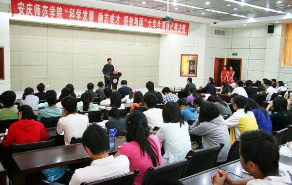 4月28日下午,由校学习实践活动领导小组办公室、学生处、团委主办的“科学发展、励志成才、报效祖国”大学生演讲比赛决赛在龙山校区行政楼一楼报告厅隆重举行。 党委委员、副院长时新中,党委副书记、纪委书记殷红出席并观看了比赛。文学院吴春平副教授,党校常务副校长、党委组织部副部长王先民,党委宣传部副部长孙永玉,校团委副书记刘燕,学生处副处长金文斌应邀担任比赛评委。各相关院系分管学生工作领导、团总支负责人和学生代表共120余人观看了比赛。
