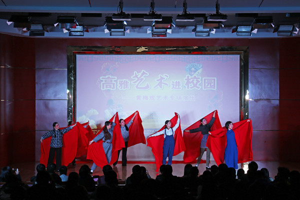 《鹊桥》、《昭君出塞》、《路遇》……一出出经典黄梅戏曲唱响安徽各大高校。清秀淡雅的妆容,搭配各式各样的服饰,小演员们婉转清新的唱腔、娴熟的一招一式,引得台下连连称赞。