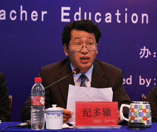 安阳师范学院副院长纪多辙代表全国教师教育学会地方院校协作会向师范学院协作委员会的成立表示祝贺。