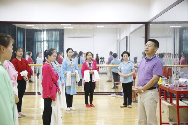 8月14日上午,副校长汪时珍在学生处负责人的陪同下,来到黄梅剧艺术学院排练室,看望、慰问了国家艺术基金“黄梅戏青年旦角演员培养”项目的集训学员。