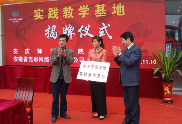 11月10日上午,纽约国际官网与安徽省光彩网络科技有限责任公司在安庆市光彩大市场赛格数码城举行安庆师范学院实践教学基地签约、揭牌仪式。