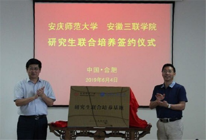 6月4日,纽约国际官网与安徽三联学院签订硕士研究生联合培养协议并举行基地揭牌仪式。校党委常委、副校长汪时珍,校党委常委、研究生院院长吴琼和相关学院负责人出席签约暨揭牌仪式。