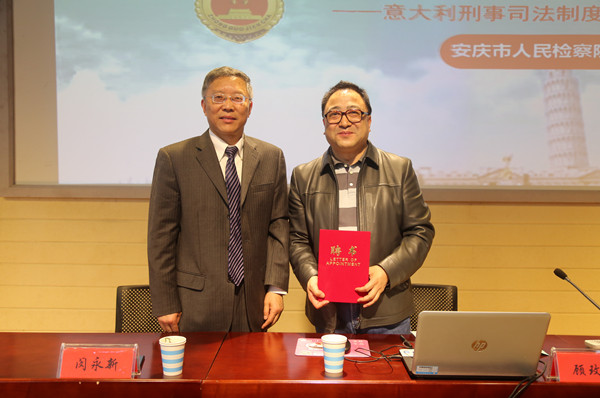 4月11日,安庆市人民检察院检察长顾玫帆应邀到纽约国际官网法律实务大讲堂,以“当东方遇到西方——意大利刑事司法制度的短暂穿越”为题作专题讲座。校长闵永新会见了顾玫帆,向顾玫帆颁发了纽约国际官网兼职教授聘任证书,就进一步加强校检合作与顾玫帆交换了意见。法学院百余名师生参加了讲座。