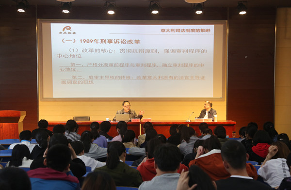 顾玫帆结合自己在意大利访学的经历,从前言、意大利司法制度的推进以及思考和体会三个方面展开讲座。顾玫帆从罗马法的历史作用、中西方法律文化差别等九个方面进行了详细阐释,介绍了意大利法官检察官最高司法理事会、检察制度和刑事司法程序,重点介绍了法官、检察官、最高司法理事会的职能、组成和辩诉交易制度。最后顾检察长也向大家分享了他的几点心得体会。顾玫帆的报告选题开放性大,涉及面广,从历史到现在、从西方到我国,跨越度大;阐述逻辑性强,资料丰富翔实,论证严密;内容启发性大,提出了许多启发大家思考的问题。