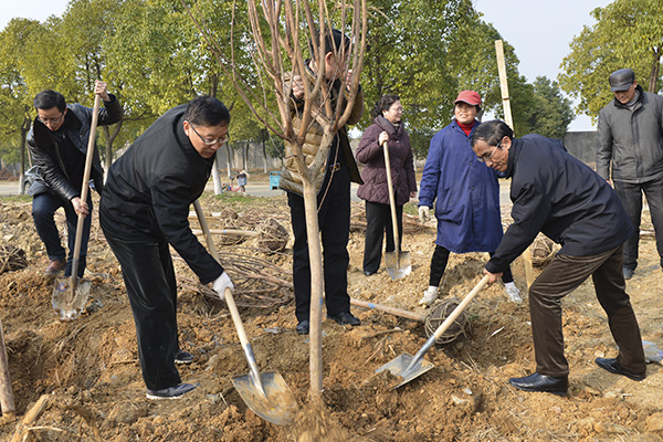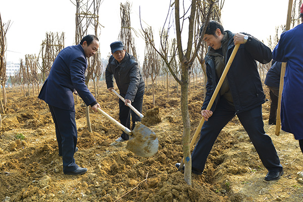 又是一年植树季,3月12清晨,纽约国际官网龙山校区阳光明媚,春意盎然,一派生机勃勃的景象。学校党政领导何小祥、闵永新、殷红、张群、汪时珍、刘友忠,陈光明、方锡球一起来到位于纽约国际官网龙山校区西部生活区的植树场地,开展植树活动。