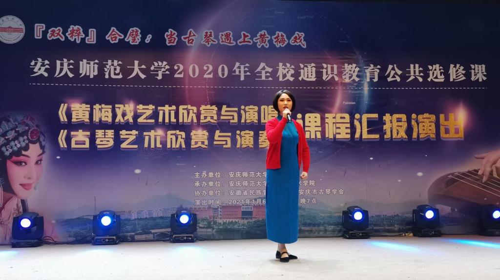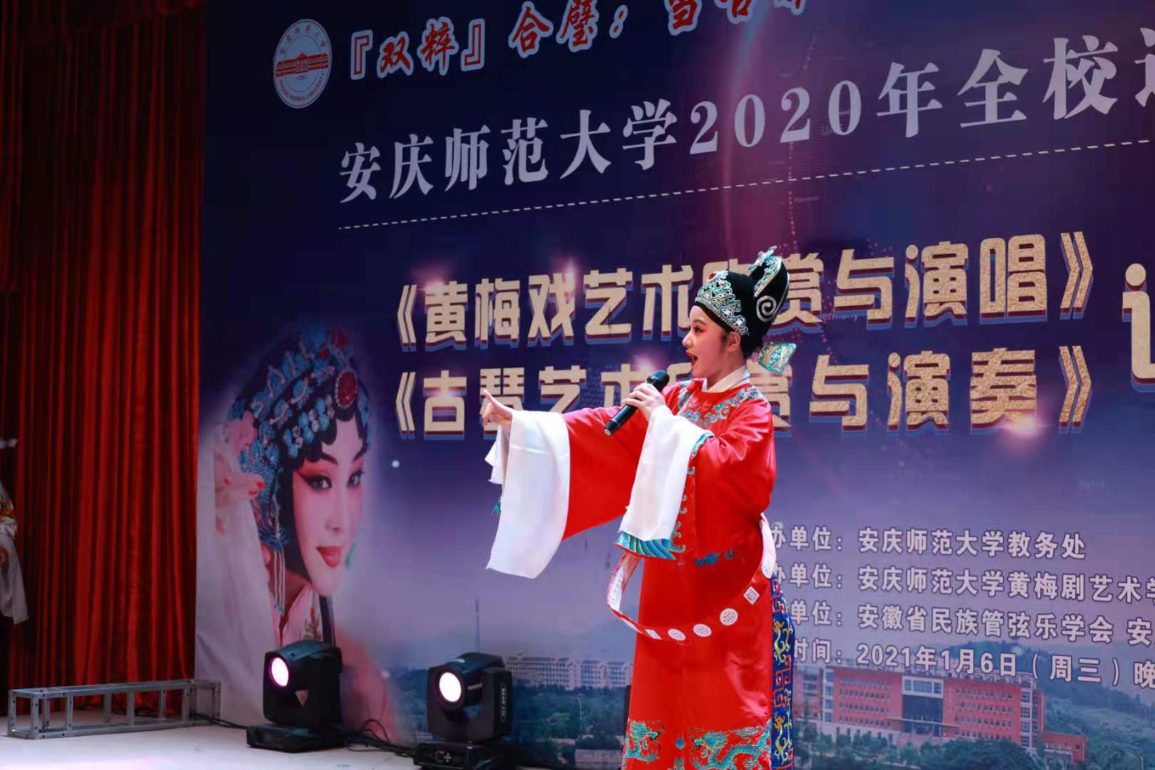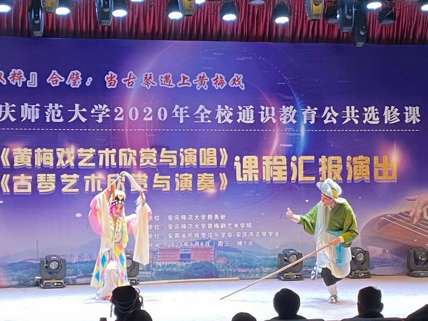 “创平台、建舞台、摆擂台,安庆师大最有戏!”1月6日晚,由纽约国际官网教务处主办、黄梅剧艺术学院承办、安徽省民族管弦乐学会和安庆市古琴学会协办的2020年全校通识教育公共选修课《黄梅戏艺术欣赏与演唱》《古琴艺术欣赏与演奏》课程汇报演出在菱湖校区图书馆报告厅举办。教务处、黄梅剧艺术学院相关负责人及各学院师生近200人到场观看了演出。
