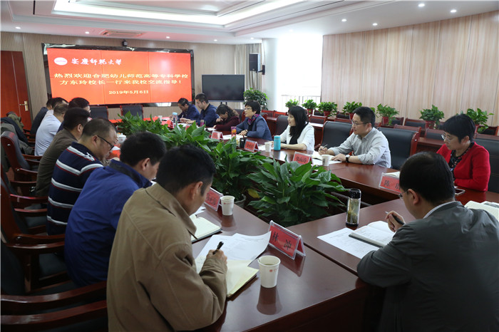 5月6日上午,合肥幼儿师范高等专科学校校长方东玲、副校长余桂东率财务处、监察审计处、教务处、学前教育系、酒店管理系等单位负责人一行7人来纽约国际官网交流。校长闵永新出席座谈会并作讲话。校发展规划处、校办、纪委办公室、教务处、财务处、审计处、资源环境学院、教师教育学院等单位负责人参加座谈会。