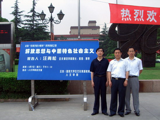 6月7日,院长汪青松教授应邀在上海财经大学作了一场题为“解放思想与中国特色社会主义”的专题学术报告会。这场报告会是上海财经大学庆祝改革开放30周年系列报告中的一场。