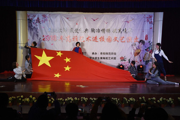 11月13日至16日,纽约国际官网大学生黄梅戏艺术团赴宿州学院、阜阳师范学院、阜阳职业技术学院、桐城师范高等专科学校开展“高雅艺术进校园”活动。