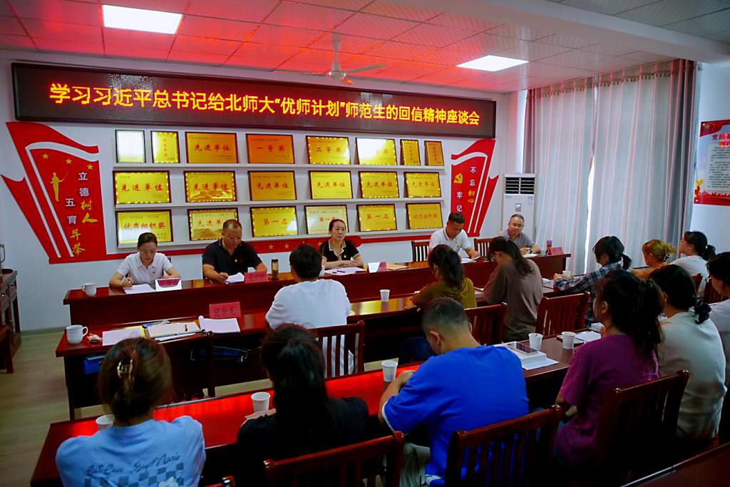 座谈会上,教师教育学院负责同志领读了习近平总书记给北京师范大学“优师计划”师范生回信的全文,19名同学结合自己顶岗支教经历汇报了自己学习习近平总书记回信精神的感受和感悟,同学们纷纷表示将继续深入学习回信精神,并立志在顶岗支教实践中进一步贯彻落实回信精神,不断砥砺品格,增长传道授业解惑本领,努力成为党和人民满意的“四有”好老师,为培养德智体美劳全面发展的社会主义建设者和接班人贡献力量。