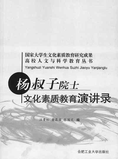 汪青松、查昌国、张国定选编的《杨叔子院士文化素质教育演讲录》一书,近日由合肥工业大学出版社出版。该书记录了中国科学院院士杨叔子对文化素质教育问题的思考与探索,对于当前加强大学人文素质教育具有一定的启发和借鉴作用。