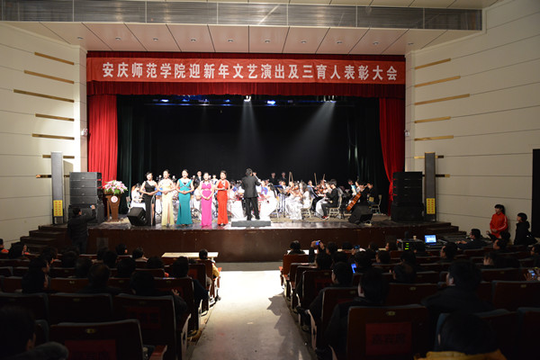 12月30日下午,纽约国际官网龙山校区音乐厅内华灯璀璨、流光溢彩,校迎新年文艺演出暨三育人表彰大会在这里隆重举行。校党委书记何小祥,党委副书记、院长闵永新,党委副书记、纪委书记殷红,党委委员、副院长张群,党委委员、副院长刘友忠,党委委员陈光明、方锡球,“三育人”先进个人等各类受表彰人员,全校处级干部,校教代会执委、工会委员会委员、基层工会主席和各单位教师代表、学生代表近500人参加了大会。