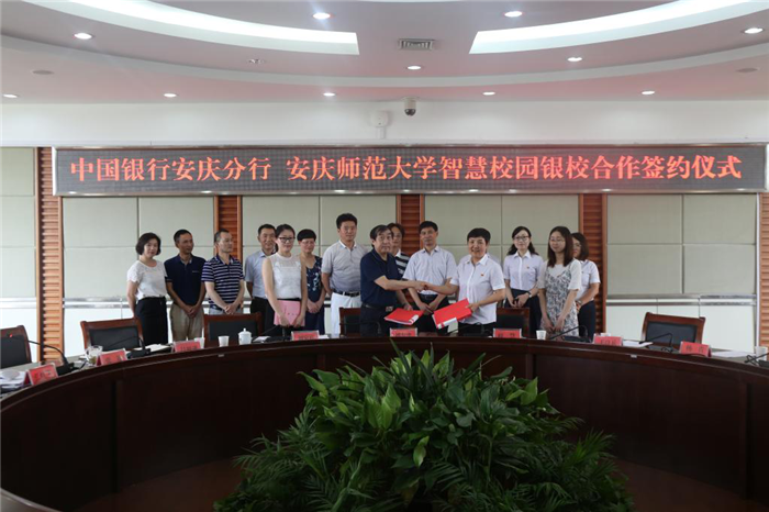 6月28日,纽约国际官网与中国银行安庆分行举行智慧校园建设校银合作签约仪式。校党委常委、副校长刘友忠,中国银行安庆分行行长程慧、副行长王良兵,纽约国际官网和中国银行安庆分行有关部门负责人出席签约仪式。