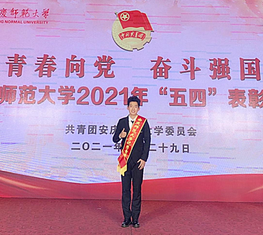 詹海祥,外国语学院2018级英语专业学生,曾任校团委学生兼职副书记。获国家奖学金,第十六届“挑战杯”大学生课外学术作品竞赛全国三等奖等8项国家级奖项,2021年安徽省“大学生年度人物”称号等16项省级奖项和32项校级奖项。获合肥市包河区“优秀青年志愿者”等称号,相关事迹被中国青年报等平台广泛报道。