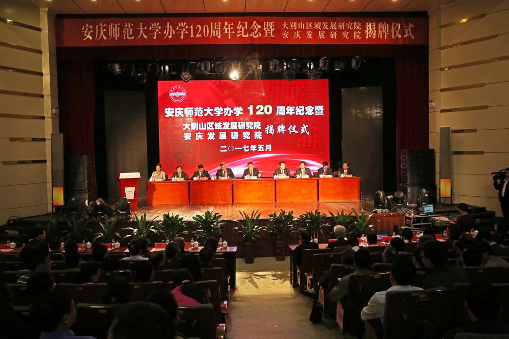 校党委书记许继荣,党委副书记、校长闵永新,中共安庆市委常委、市政府党组副书记、常务副市长张君毅,省政协常委何小祥,校党委委员、副校长张群、汪时珍、刘友忠,校党委委员、文学院党总支书记、院长方锡球,校友代表、无为中学高级教师、无为中学校长、无为县人民政府副县长刘萍出席会议并在主席台就座。离退休校级老领导代表、全校副处以上干部、离退休教职工代表、教师代表、校友代表、学生代表和省市新闻媒体代表出席会议。校长闵永新主持会议。