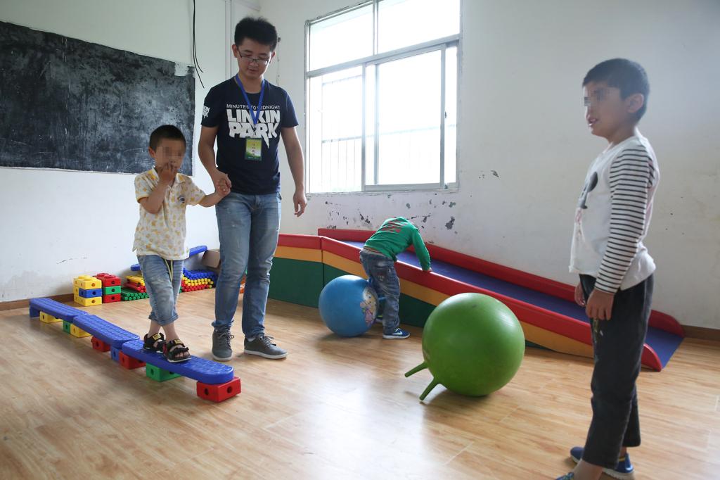 和特殊儿童相处,最需要耐心。因为身心的缺陷和障碍,他们往往不能控制自己的情绪和行为,甚至做出反常甚至攻击性行为,很多人可能无法忍受,但对两位支教大学生而言却是家常便饭。汪佳芮说,在学校里他的鞋子和裤腿从来就没干净过,稍不留神学生就会跑过来踩上一脚。郑法祥带两个班的感统课,和学生的肢体接触比较多,被学生掐、抓是常有的事。两人从没有一句抱怨。