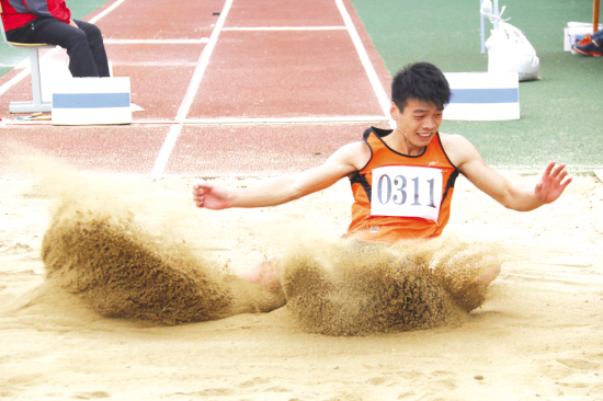 10月13日,高校部运动员在跳远比赛中。 杨树 摄