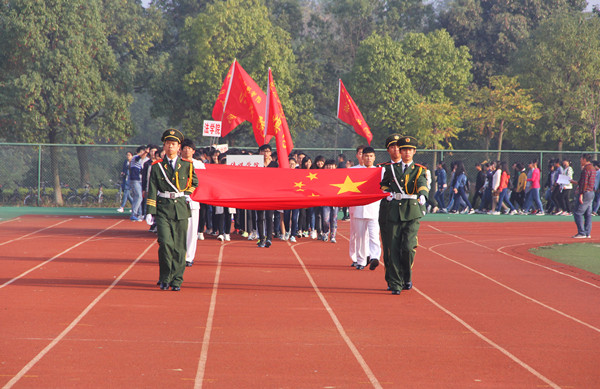 院长闵永新宣布运动会正式开始。党委副书记、纪委书记殷红致开幕词。她希望一年一届的运动会进一步促进校园体育锻炼风尚的形成,让强身健体成为广大师生的一种追求,使体育运动成为一种良好的习惯。副院长张群主持开幕式。之后,裁判员代表、运动员代表进行宣誓。