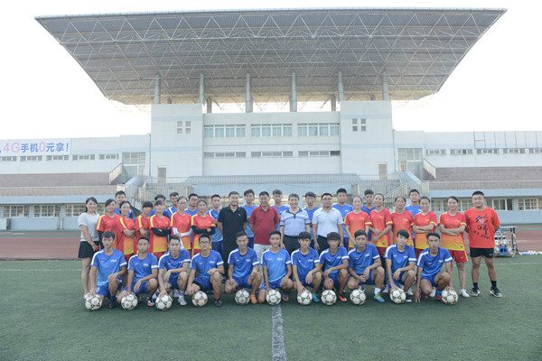 8月16日,校体艺委特邀著名足球教练、中国女足前主教练马良行先生来校指导。副校长、校体艺委主任、校足球领导小组组长张群率体育学院党政领导、校足球发展研究中心相关老师、足球训练营同学对马教练的到来表示欢迎,并在校田径场举行了简约而热烈的欢迎仪式。