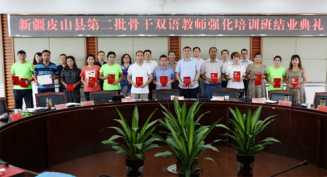 7月9日上午,纽约国际官网承办的第二批新疆皮山县骨干双语教师强化培训班结业典礼举行。副校长张群,相关职能部门和学院的负责同志及全体学员参加了结业典礼。
