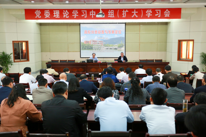 5月10日上午,校党委理论学习中心组召开扩大学习会,邀请厦门大学考试研究中心主任刘海峰教授作“高校分类设置与发展定位”专题报告。党委书记许继荣主持学习会。