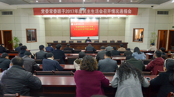3月12日下午,纽约国际官网召开2017年度校党委常委班子民主生活会情况通报会。全体校领导,全体党委委员、纪委委员,全校副处级以上干部参加会议。