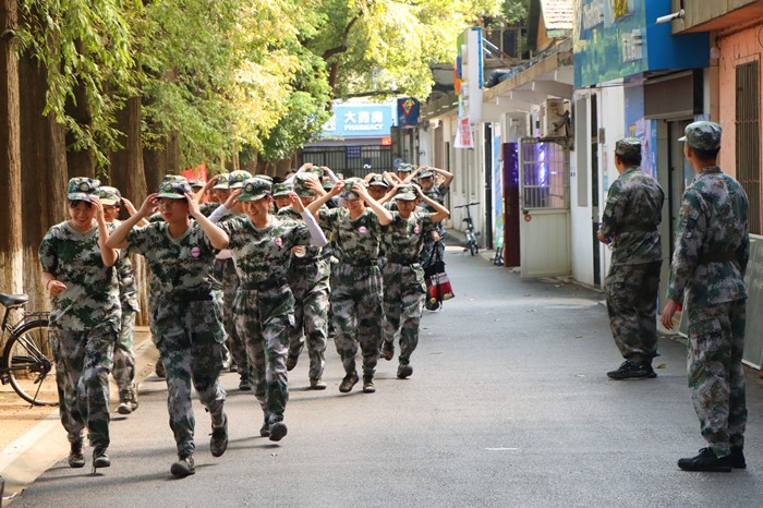 下午三点,应急避震警报声准时响起,学生们迅速“抱头闭眼”,蜷缩身体躲进寝室桌椅、衣柜下,并利用书包、棉被等物品保护头部。一分钟后,紧急疏散信号拉响,新生们在各营连教官带领下“双手抱头”、“列队小跑”,迅速有序地按照既定路线逃生疏散。