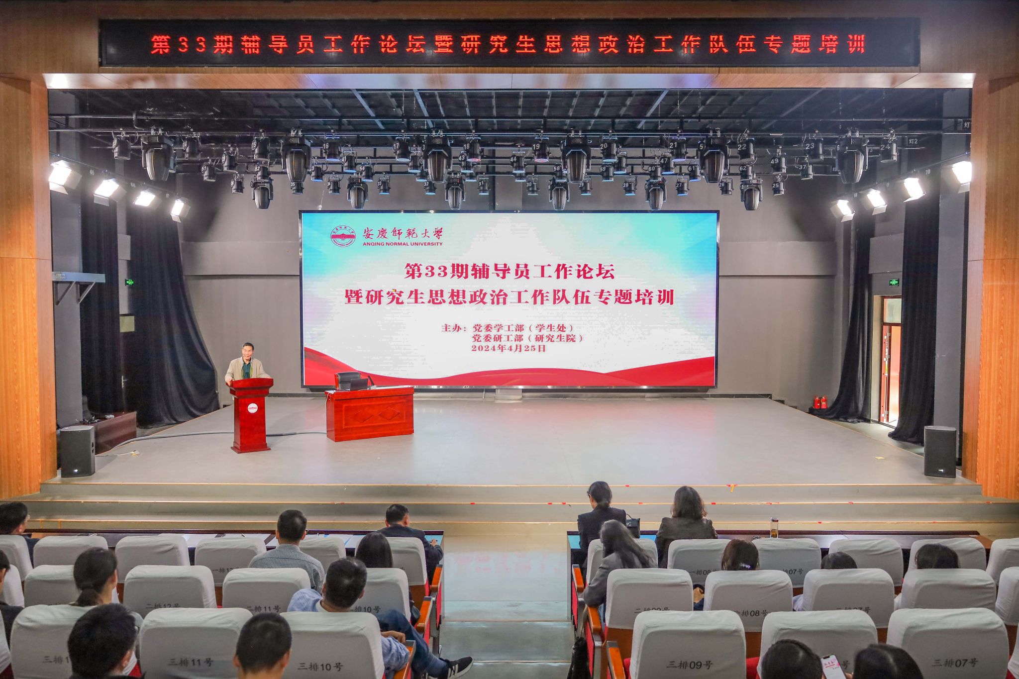 4月25日,学校举办第33期辅导员工作论坛暨研究生思想政治工作队伍专题培训。各学院分管学生工作书记、全体专兼职辅导员、党委学生工作部、研究生工作部全体成员、研究生会骨干参加会议。