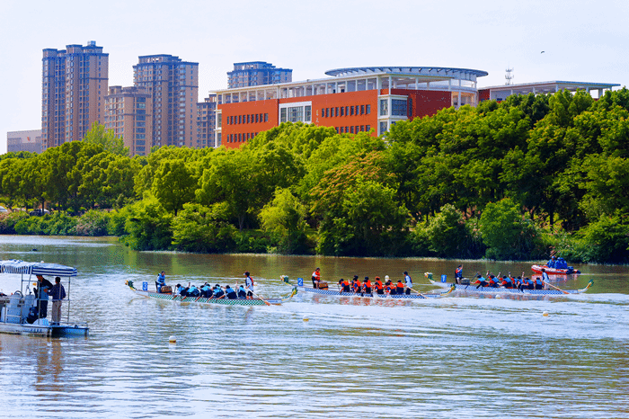 龙舟赛裁判长许贵泉教授表示,龙舟赛是学校的特色体育项目,学校设有龙舟俱乐部,且配备专业教师,会定期面向全校学生开展龙舟体验课程。“我们将学生体育课堂的形式从体育馆拓展至了双龙湖畔,希望学生们能够在各色体育课程中感悟运动魅力。”