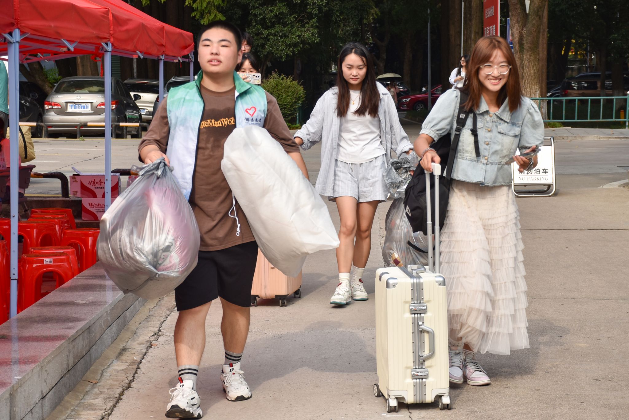 1个随行书包、20余小时、1226.6公里……来自广西梧州的新生徐晓灿在志愿者的带领下走进“新家”。“我提前几天便将行李邮寄到学校,独自一人坐火车从梧州来到安庆。”徐晓灿表示,初次独自远行,心中虽有紧张,但更多的是对新学校、新旅程的期待。“希望在安庆师大的求学生涯同我的名字一样灿烂辉煌。”与徐晓灿同样来自广西新生还有韦丽瑶,她在家人的陪伴下来到学校。“即便路途遥远,我也想亲自来看看女儿未来生活和学习的地方。”韦丽瑶的父亲直言,看到学校各项暖心的迎新服务,心里的那块石头便落下了。