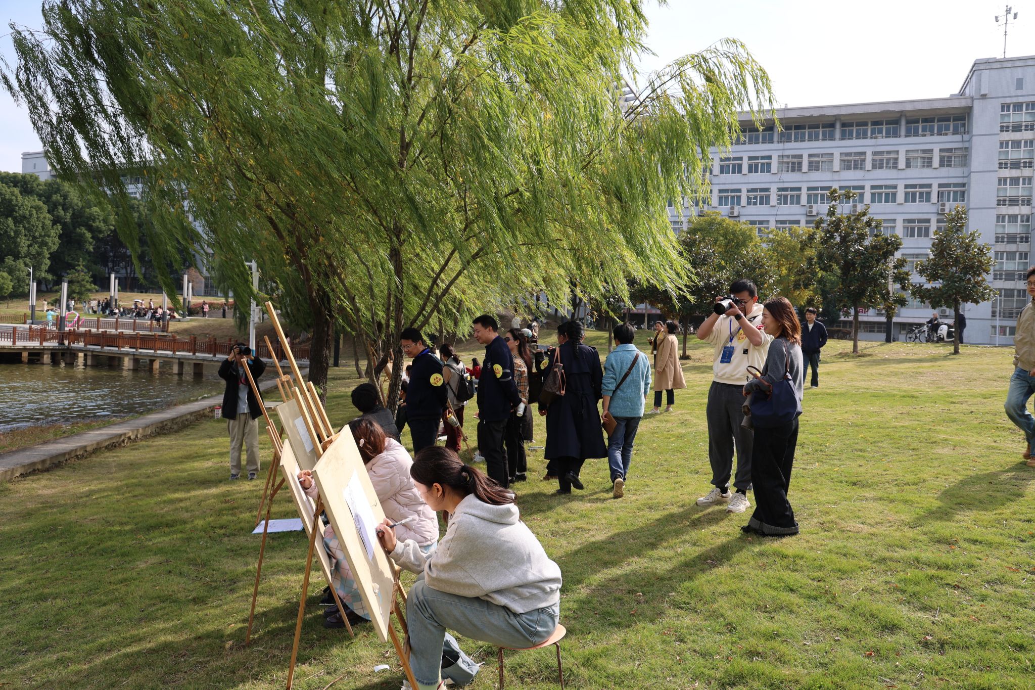 活动期间,安徽省中央新闻单位记者走进校园践行“四力”,与师生开展深入交流,全方位、多角度体验大学的魅力与活力。记者们参观了天文爱好者协会、军事爱好者协会、书画协会、微生物艺术画协会展览,亲身感受大学校园的青春气息。在双龙湖畔,记者们在参观学校公共艺术教育成果展时看到了练习黄梅戏的同学们,同学们身着传统戏服,唱腔悠扬,身段婉转,展现了黄梅戏独特的艺术魅力。记者们和正在写生的同学们围在一起,交流大学生活、观摩写生、观看湖景。现场氛围热烈温馨,记者们纷纷拿起相机记录校园的美好瞬间,这些影像和故事,将会通过他们的笔触与镜头,传递给更多的人,让更多人了解学校的历史底蕴和发展成就。(撰稿:范龙超 学生记者 苏月月 摄影:江伟 学生记者 刘一涵 编辑:范龙超 审核:陈秀)