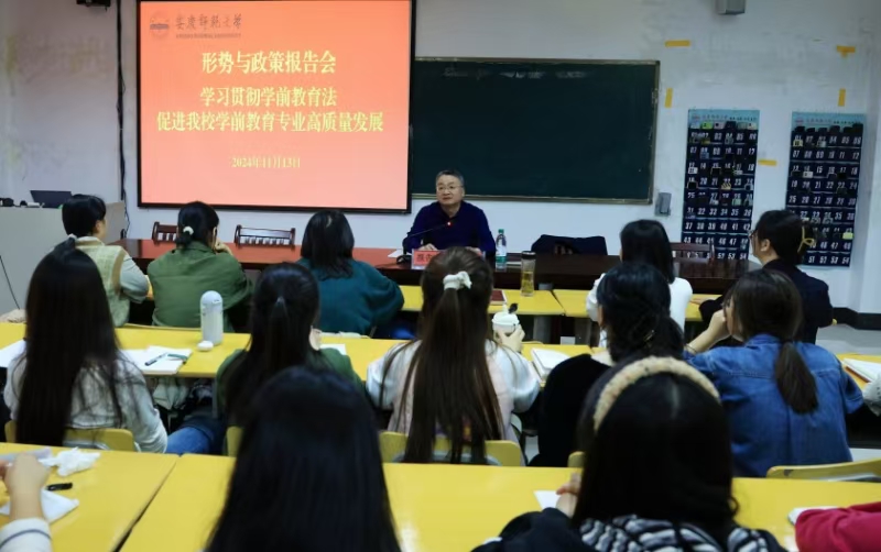 11月13日,校党委书记李福华为教育科学学院师生作《学习贯彻学前教育法,促进纽约国际官网学前教育专业高质量发展》的形势与政策报告,深入学习贯彻党的二十大和二十届二中、三中全会精神,贯彻落实习近平总书记关于教育的重要论述和全国教育大会精神,学习宣传学前教育法,推动学前教育专业认证专家反馈问题整改工作。